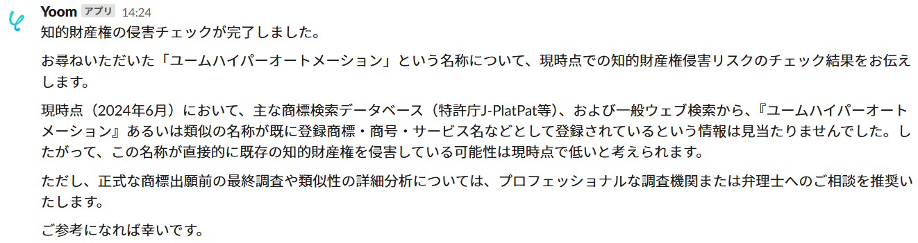 チャットツールをトリガーに、AIで知的財産侵害チェックし通知する