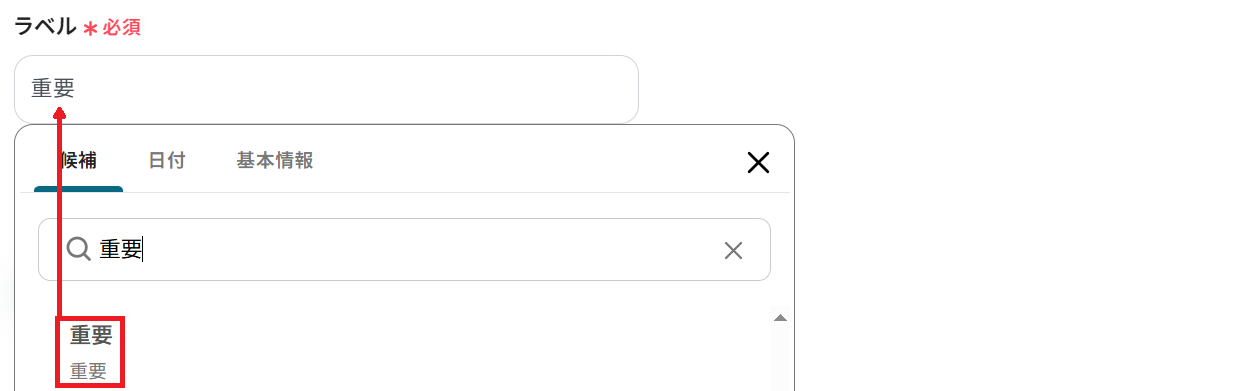 - 既存ラベルを選択するか、新規ラベルを作成する