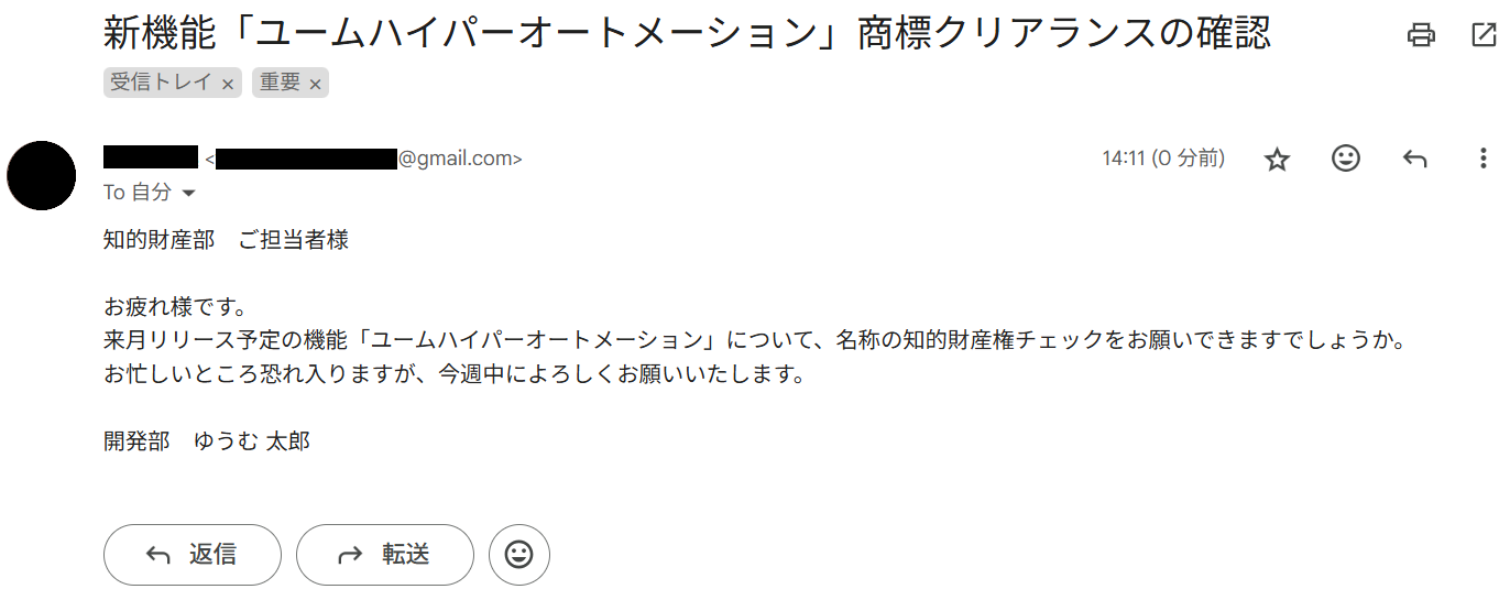 メールツールをトリガーに、AIで知的財産侵害チェックし通知する