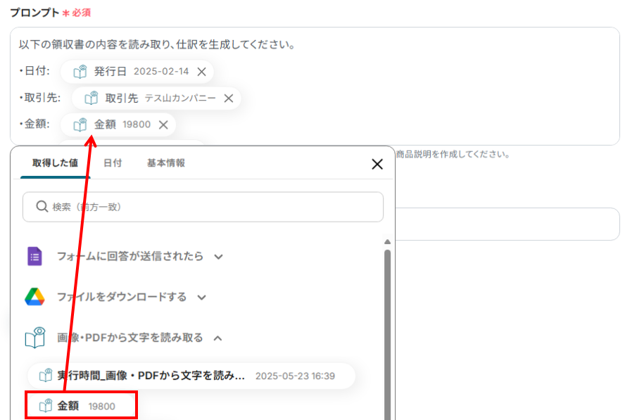 Googleフォームから送信された書類をOCRで読み取り、AIで仕訳後、Google スプレッドシートに追加する