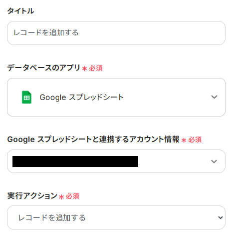 実行アクションは「レコードを追加する」のままでOKです!