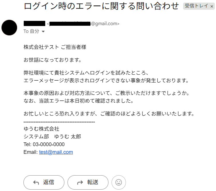 続けて、連携したGmailアドレスにテスト用メールを送信してください。