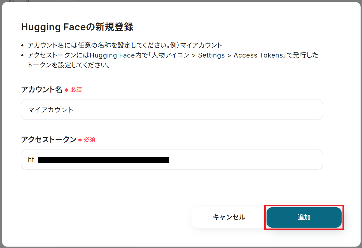 Gmailについては、上のナビで解説されているGoogle スプレッドシートと同じ手順で連携可能です。Hugging Faceについては以下の手順をご参照ください。