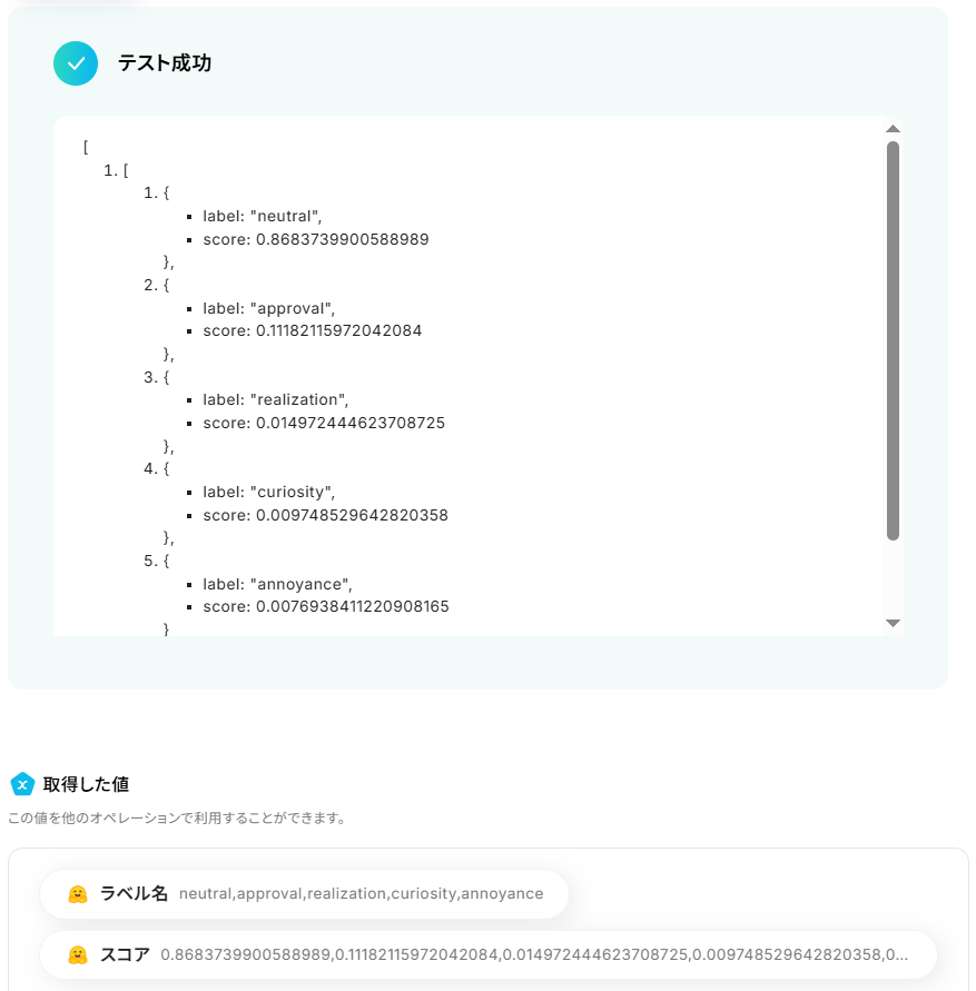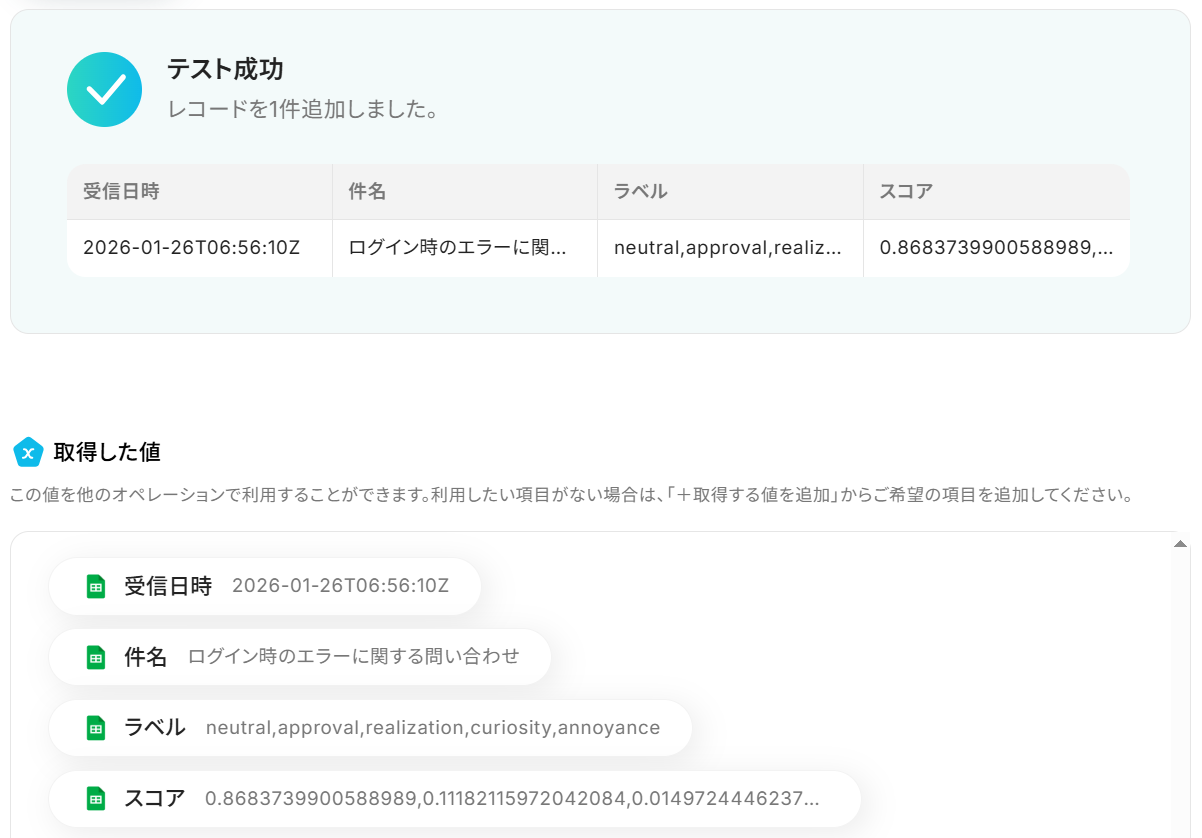成功したら保存してください。Hugging Faceがメールの内容を解析・分類してくれました!
