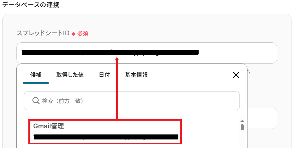 次に、先ほど用意したシートのスプレッドシートIDを候補から選択してください。