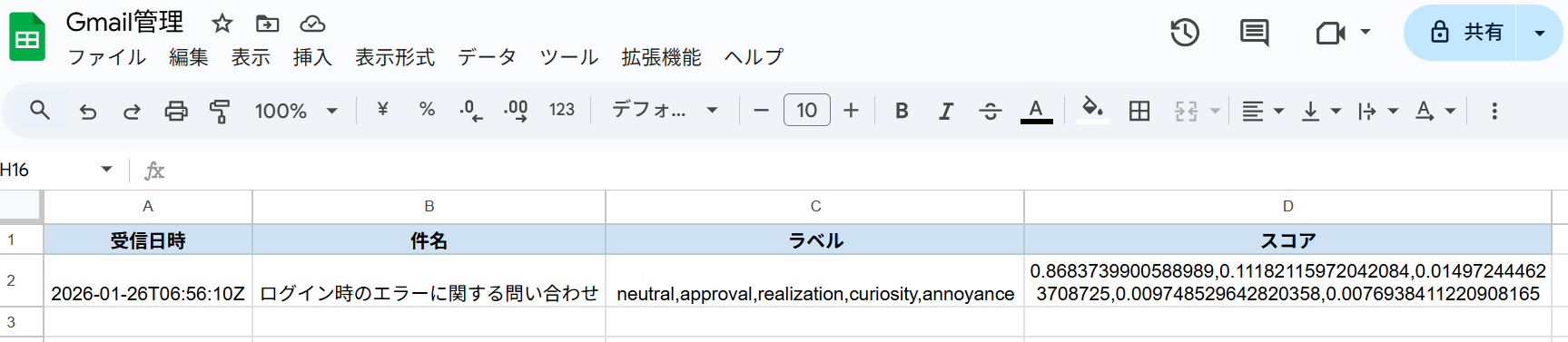 Gmailで受信したメールをHugging Faceで分類して、Google スプレッドシートに自動追加する
