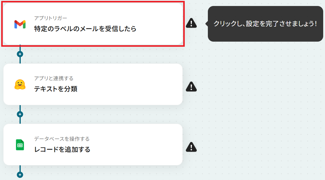 - Gmailのトリガー設定では、自動分類の対象としたいラベルを任意で設定可能です。