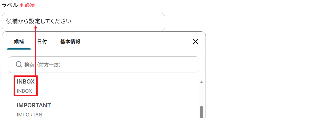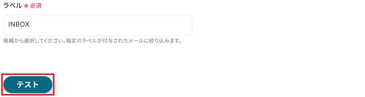 - Gmailのトリガー設定では、自動化の対象としたいメールに付与するラベルを任意で設定してください。
