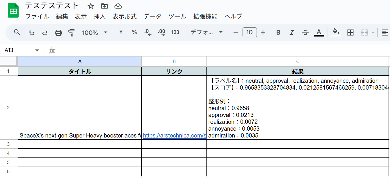 Inoreaderでコンテンツが公開されたら、Hugging Faceでテキストを分類し結果をGoogle スプレッドシートに追加する