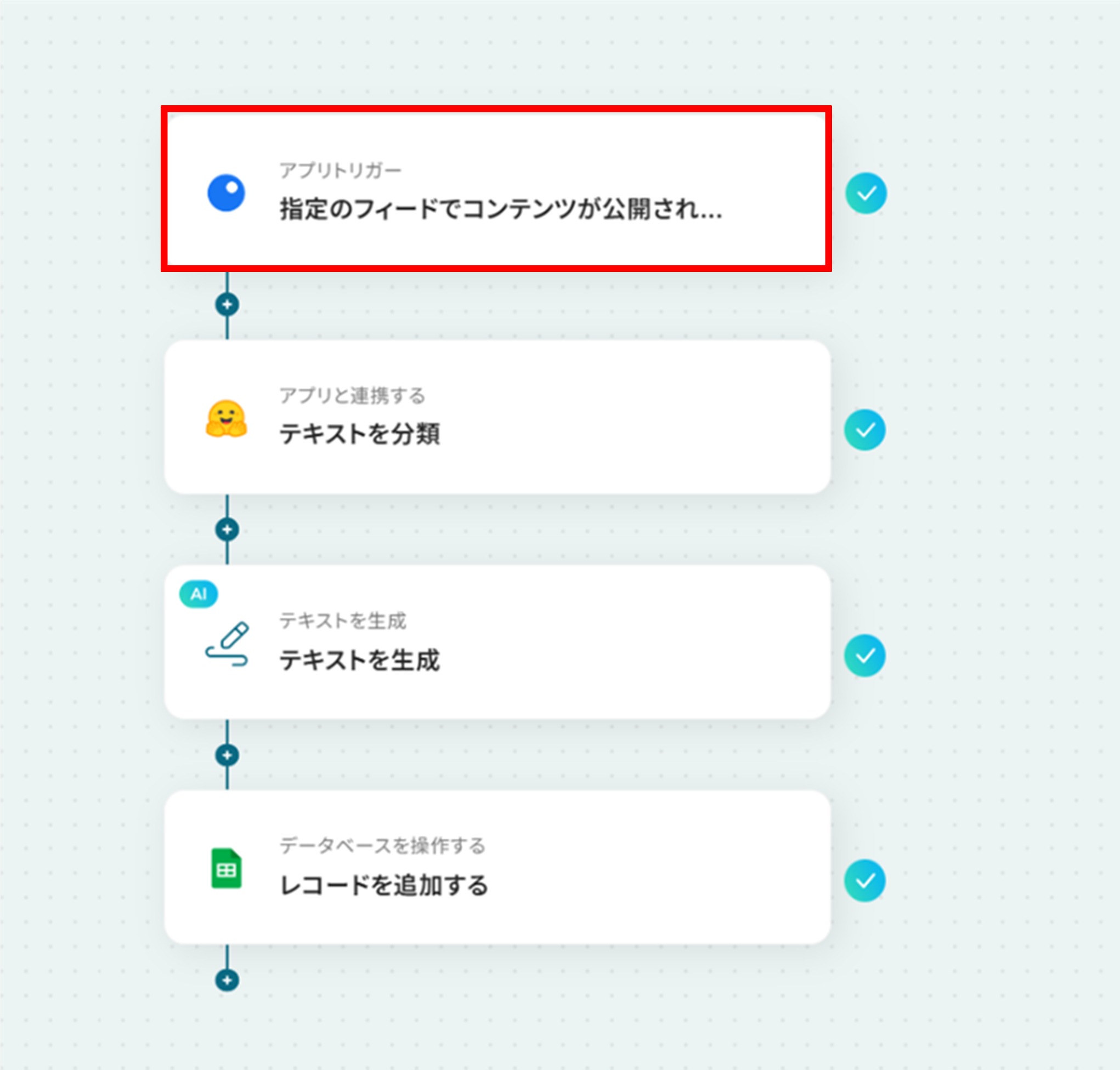 それではここから代表的な例として、Inoreaderでコンテンツが公開されたら、Hugging Faceでテキストを分類し、その結果をGoogle スプレッドシートに自動で追加するフローを解説していきます!