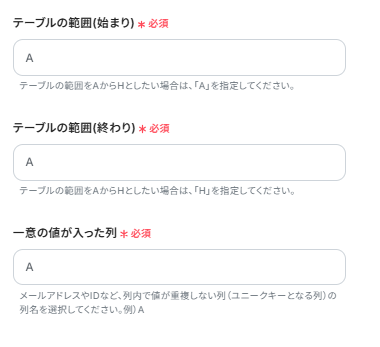 テーブルの範囲(終わり):フローの対象となる範囲の終了地点