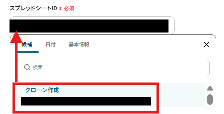 対象となるGoogle スプレッドシートIDとシートIDを候補から選択してください。 これにより、選択したGoogle スプレッドシートに対して自動的に操作が行われるようになります。