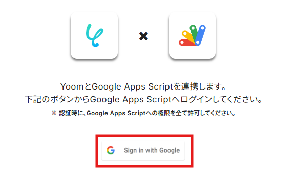 選択するとこの画面が表示されるので「Sign in with Google」をクリックします。
