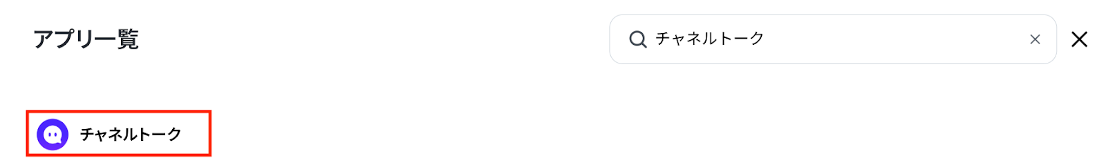 新規接続をクリックしたあと、アプリのメニュー一覧が表示されるのでチャネルトークと検索し、対象アプリをクリックしてください。