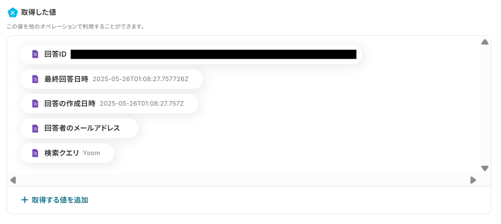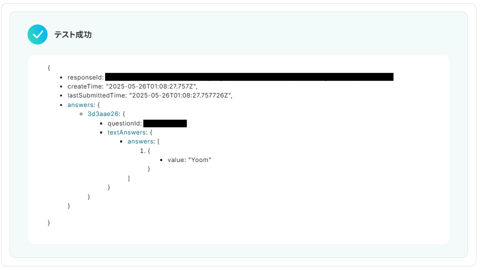 ・Googleフォームをトリガーとして使用した際の回答内容を取得する方法は下記を参照ください。