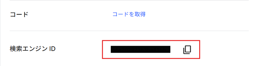 画面が進むと、検索エンジンIDという項目が出てきます。そこの検索エンジンIDをコピーしましょう。