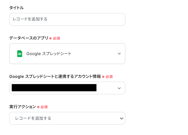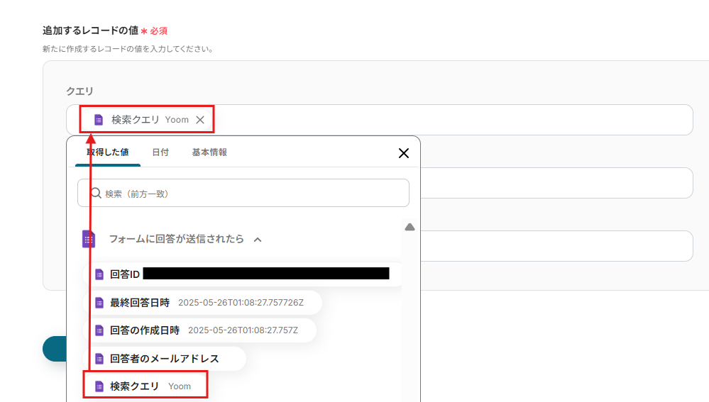 追加するレコードのクエリには、取得した値の「クエリ」を入力しましょう。