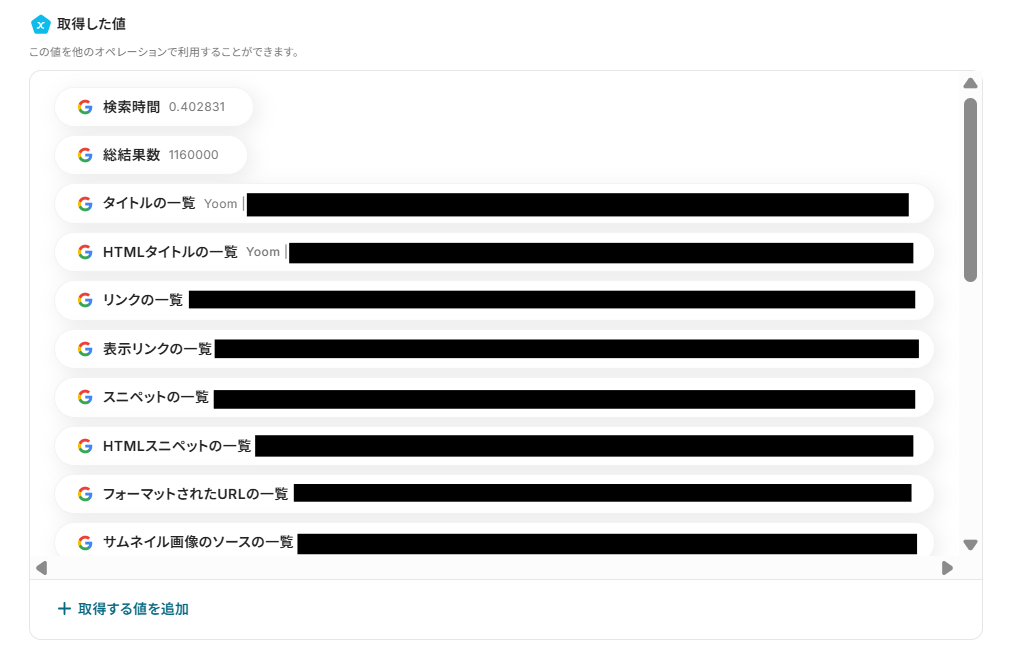 検索クエリには、取得した値から「検索クエリ」を入力しましょう。