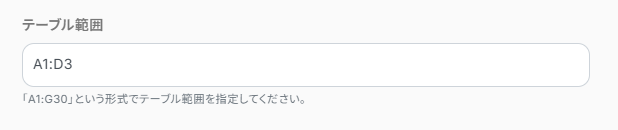 テーブル範囲を入力します。これはシートの範囲です。