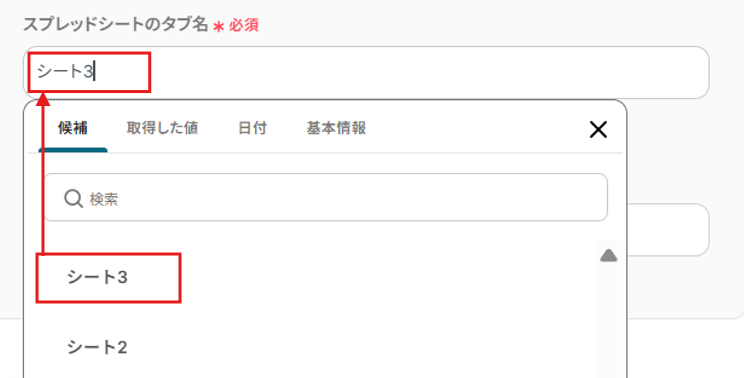 スプレッドシートIDを候補から選択してください。
