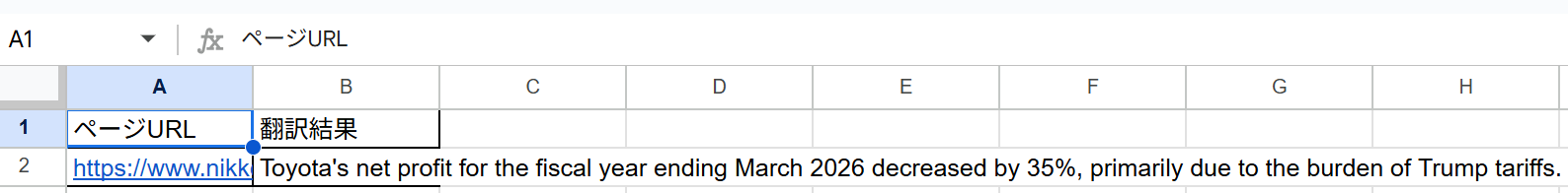 Google スプレッドシートの画面に移動すると、以下のようにデータが追加されているはずです!