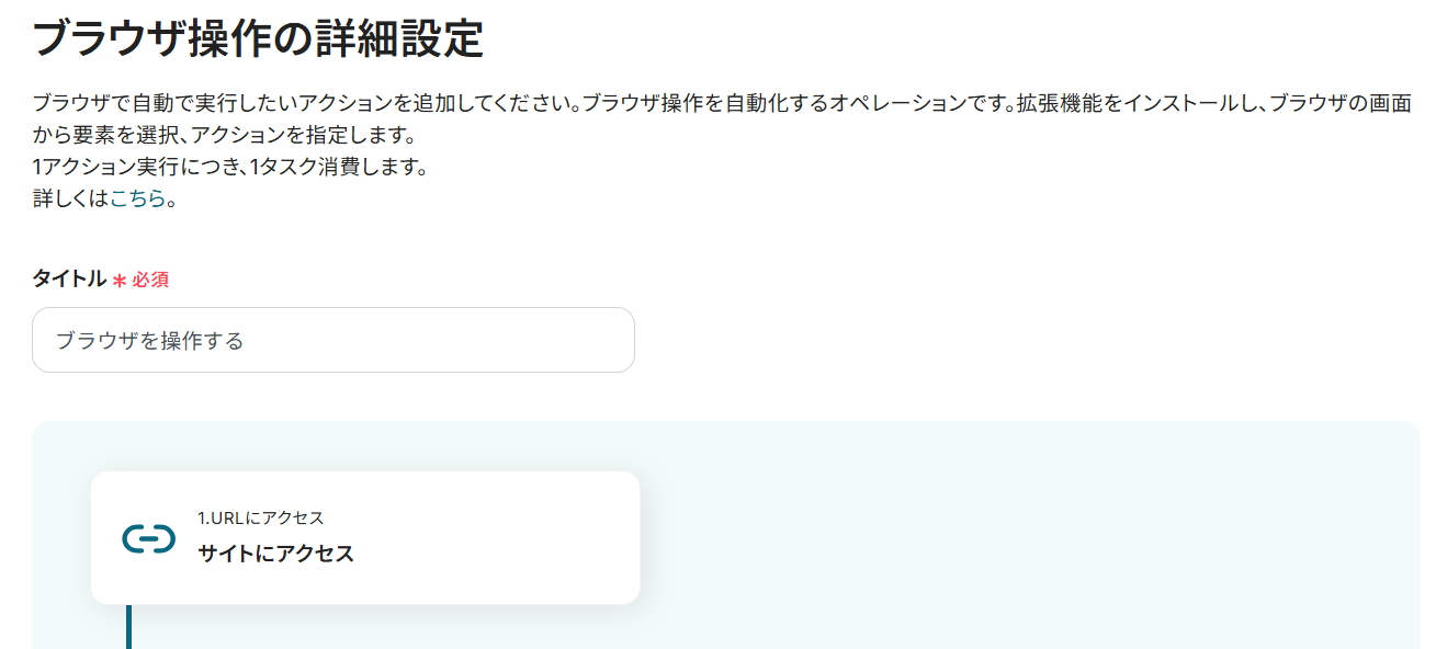 以下の画面が表示されるので、ブラウザ操作の詳細を設定します。