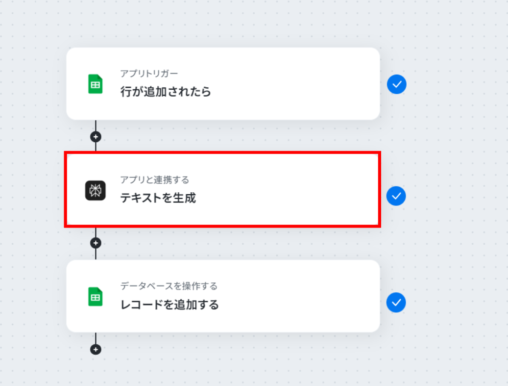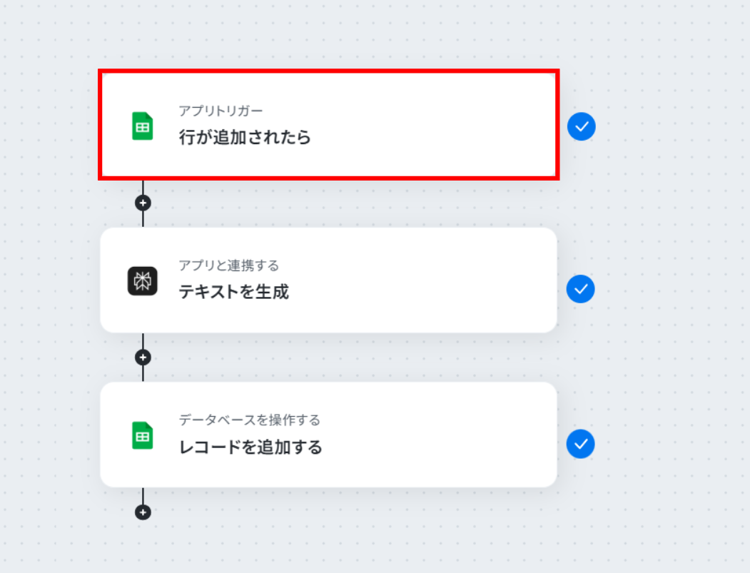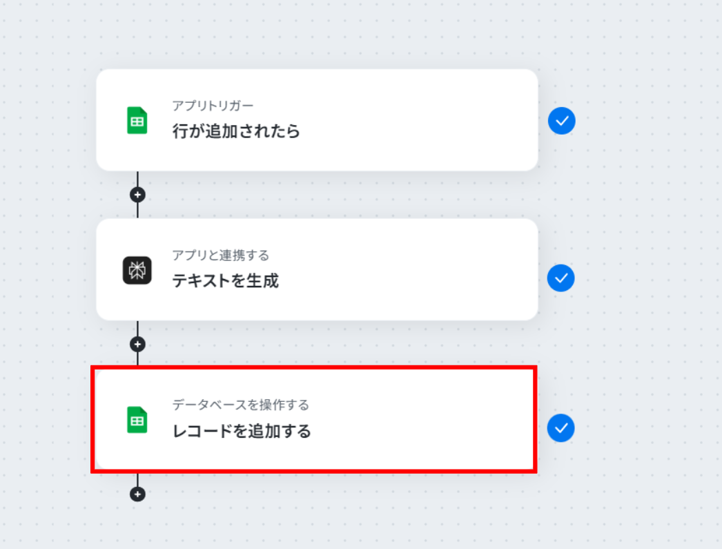ステップ5:Google スプレッドシートのレコードを追加する (1)Google スプレッドシートのレコードを追加します。