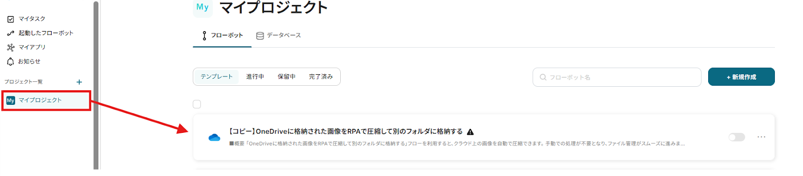 また、コピーしたテンプレートはマイプロジェクトに保存されているので、マイプロジェクトからも開くことができます。
