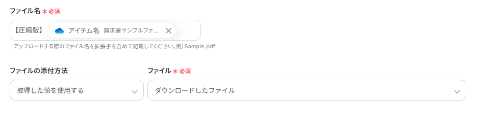 3) ファイルのアイテムIDは先ほど同様にアウトプットから選択してください。