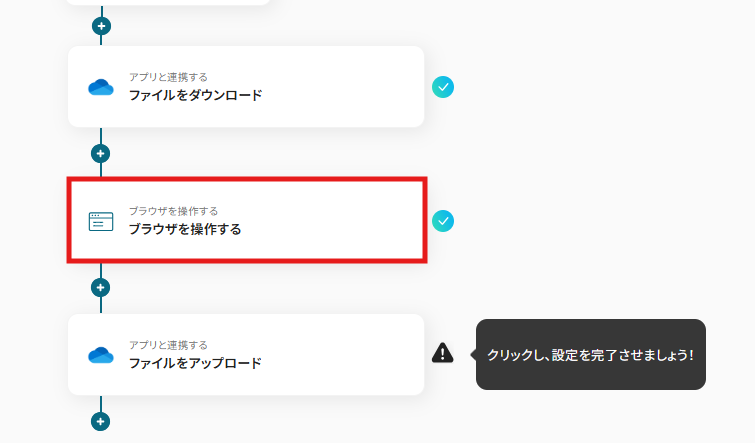 1) フローに戻り、「ブラウザを操作する」のアイコンをクリックします。