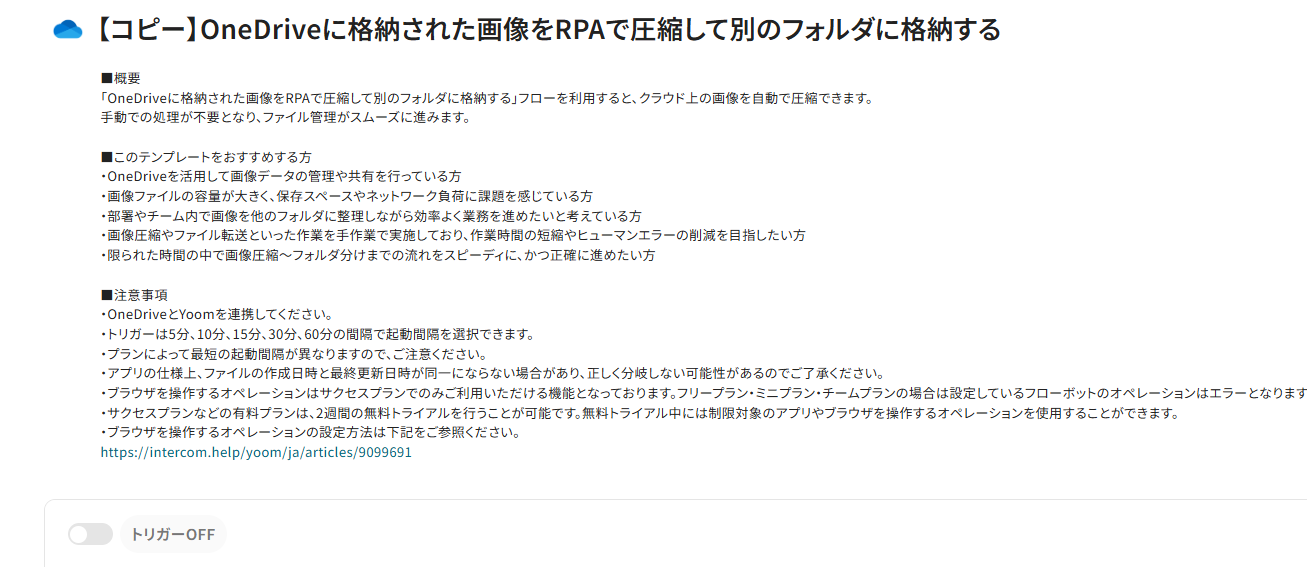 「OneDriveに格納された画像をRPAで圧縮して別のフォルダに格納する」フローを利用すると、クラウド上の画像を自動で圧縮できます。