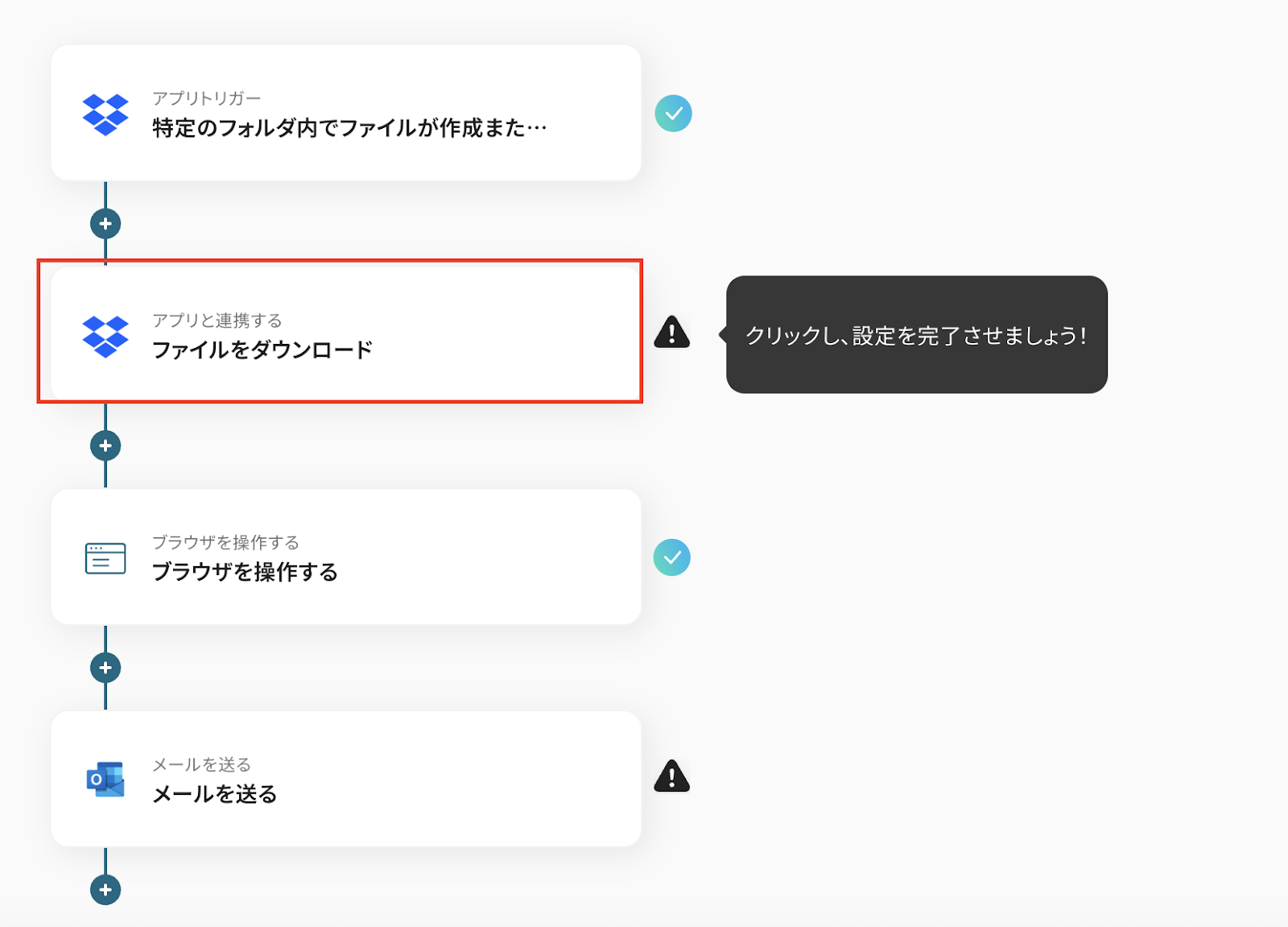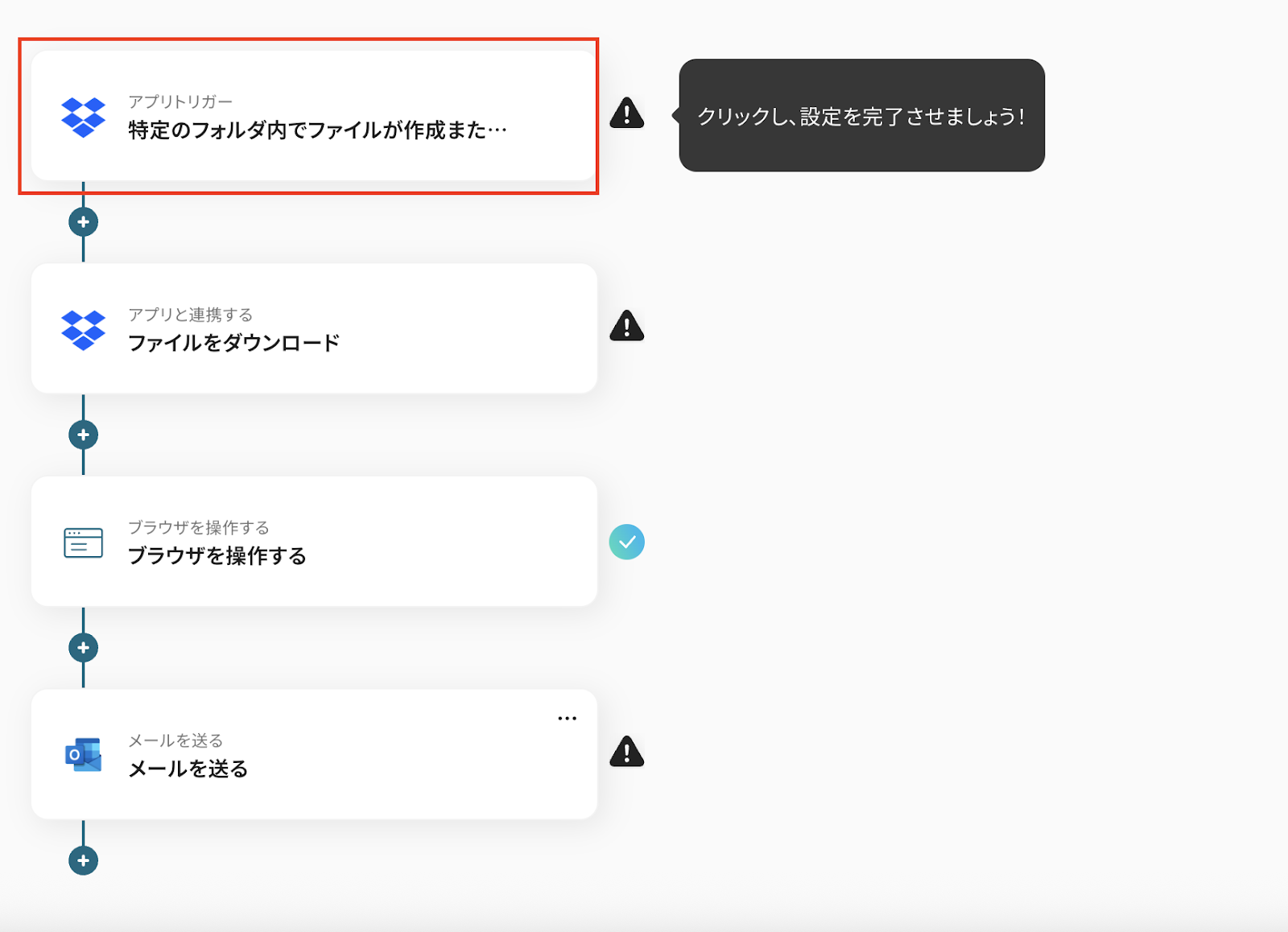 - Dropboxのトリガー設定とRPA・Outlookのアクション設定