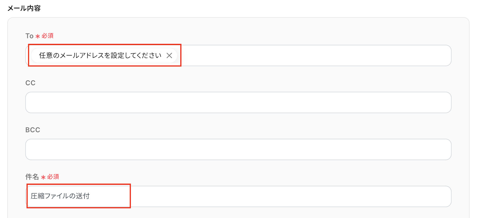 Toには、送信先のメールアドレスを設定してください。