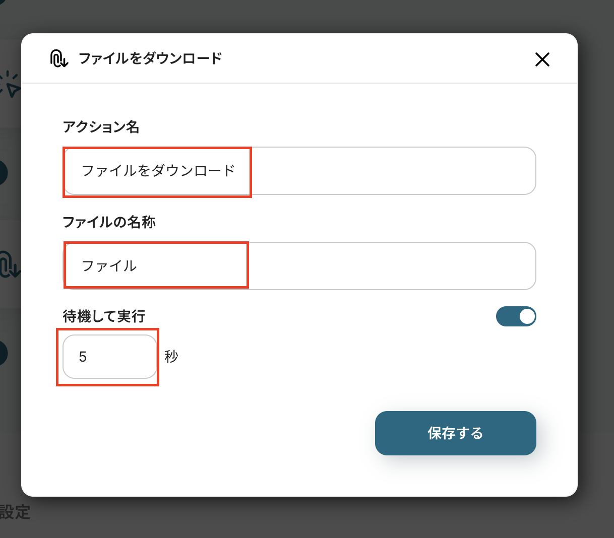 待機時間を設定していない場合、そのままオペレーションが進んで行くため、ファイルのダウンロードが間に合わずエラーが発生する可能性があります。