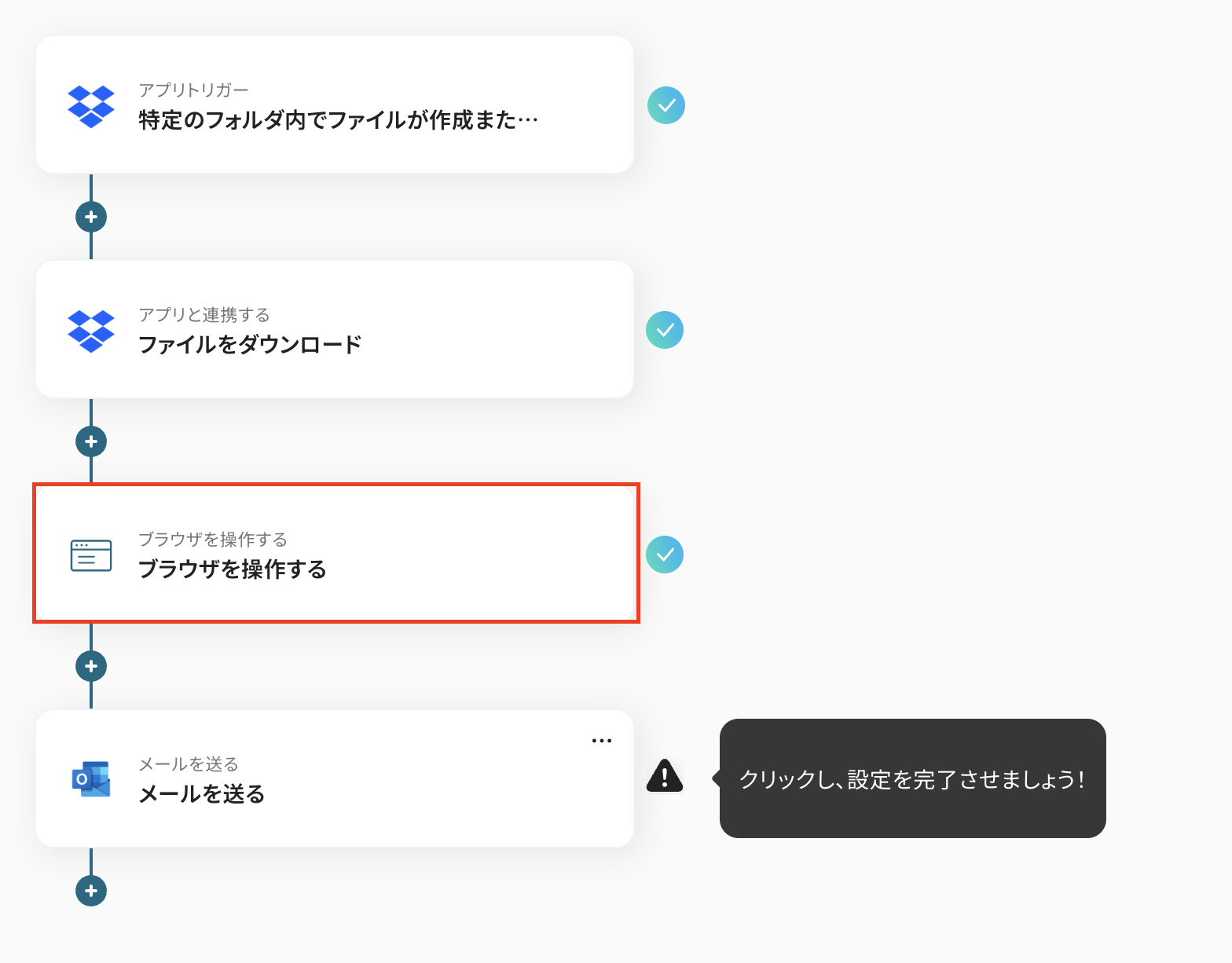 ブラウザを操作するオペレーションの設定方法はこちらを確認しましょう。