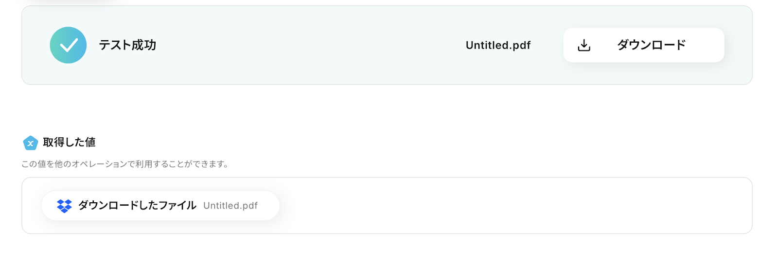 テストが成功し、PDFのファイル情報を取得できたら保存します。