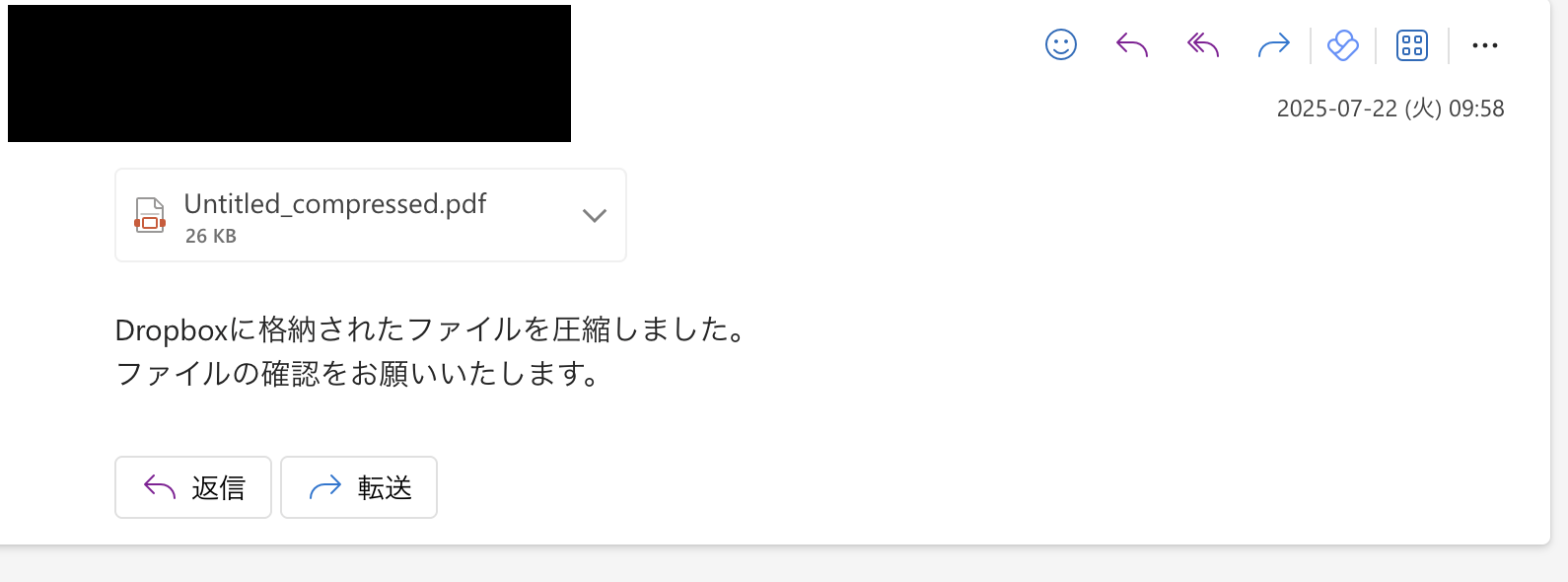 DropboxなどのストレージサービスにPDFファイルが格納されたタイミングで、自動で圧縮し、Outlookなどのメールツールから送信可能です。