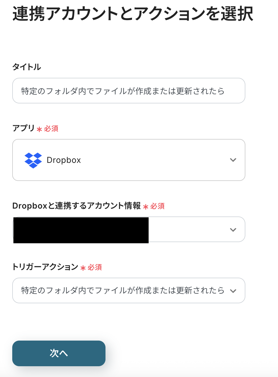 ステップ4:Dropboxのアクションを設定しよう