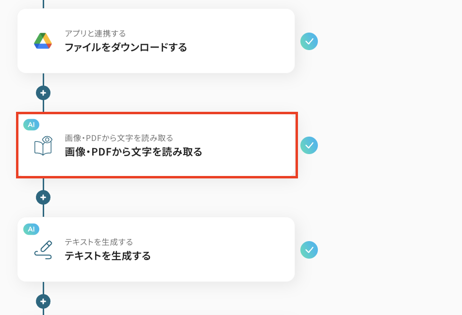 続いて、ステップ4でダウンロードした書類から、OCR機能を使って文字を読み取る設定です。