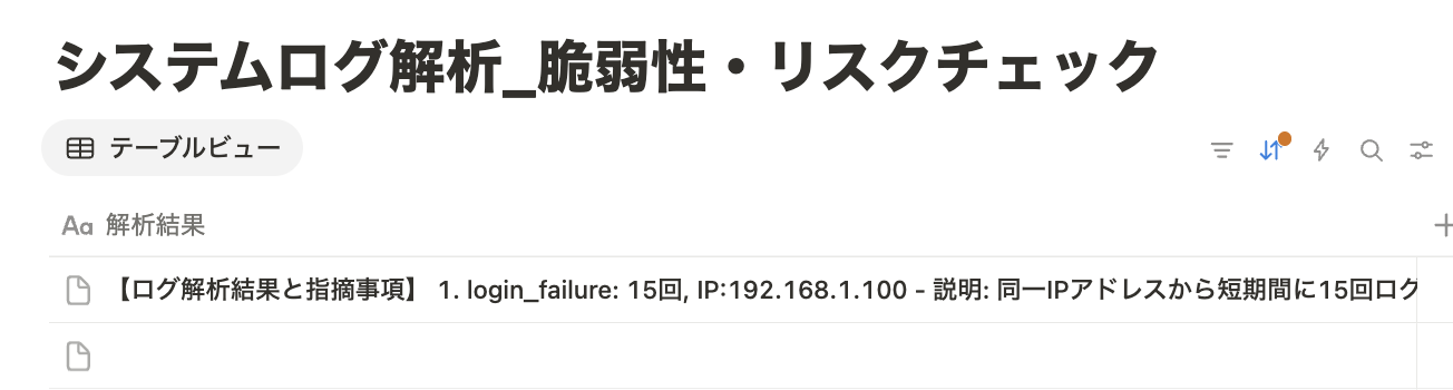 最後に、システムログの解析結果、脆弱性・リスクチェックの結果を、Notionに追加する設定を行います。