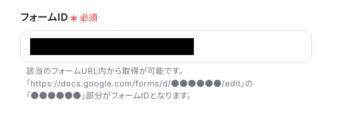 「フォームID」を入力欄下に記載されている注釈を参考にして入力しましょう。ここで設定したフォームに回答が送信されると、フローボットが起動するようになりますよ!