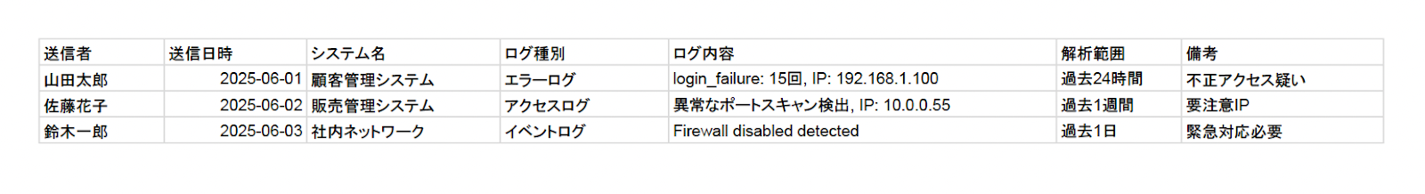Googleフォームなどのフォームツールでシステムログに関する情報を受信した際に、AIが自動で内容を解析して脆弱性の兆候を診断することができます。