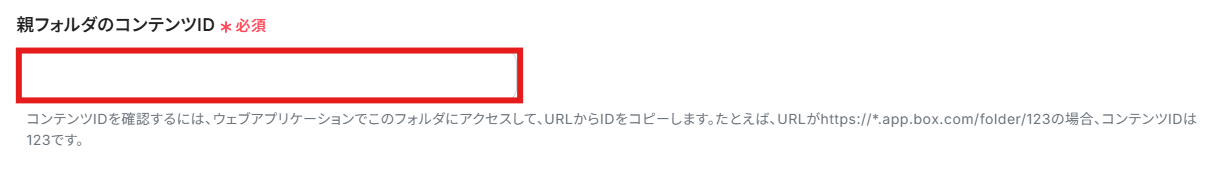 「親フォルダのコンテンツID」を注釈に沿って手動で入力しましょう。