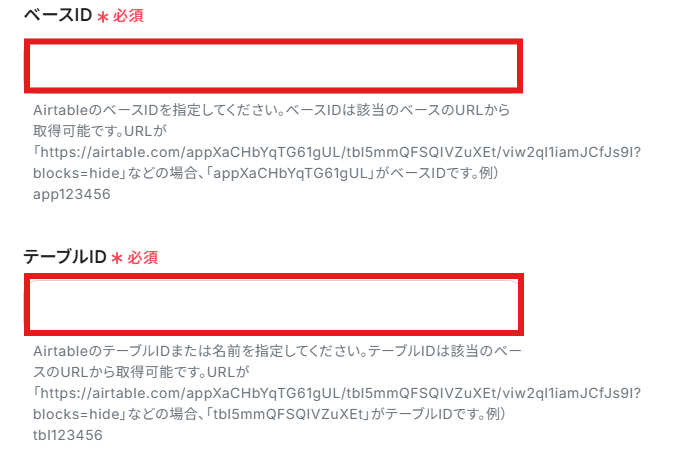 「ベースID」と「テーブルID」を注釈に沿って設定しましょう。