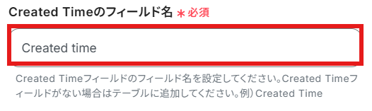 今回は例としてテーブルで「Created time」と設定していたので、「Created time」と設定しました。