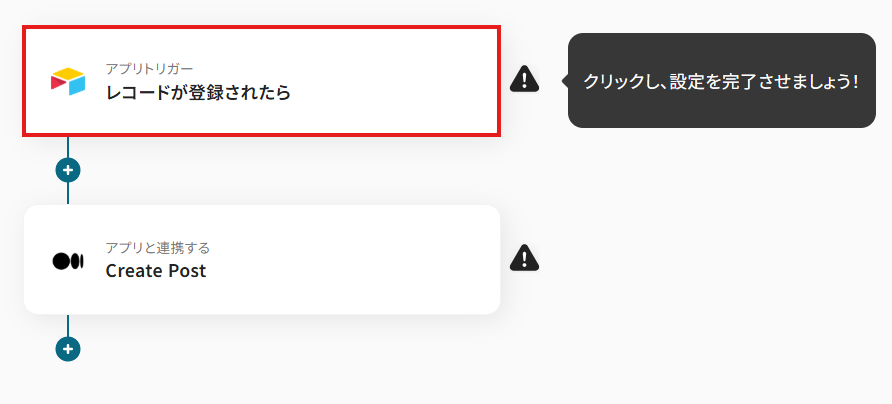 先ほどの画面で「OK」をクリックして、表示された画面のアプリトリガー「レコードが登録されたら」をクリックしましょう。