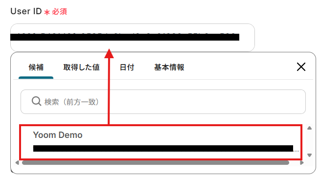 「User ID」は、入力欄をクリックして表示される候補から選択してください。