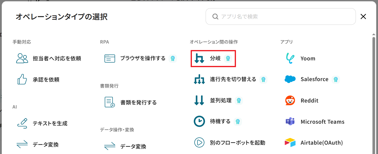 ※「分岐する」オペレーションは、ミニプラン以上でご利用いただけます。フリープランで利用するとエラーになってしまうのでご注意ください。