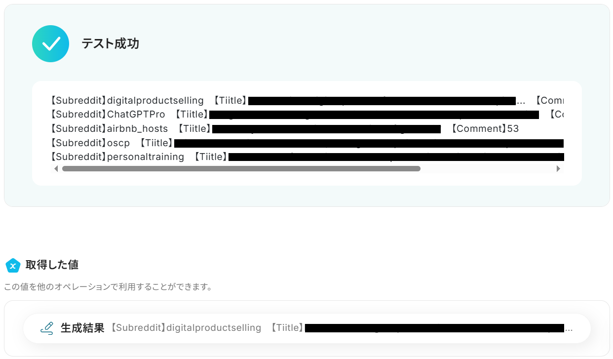 このワークフローを活用すれば、特定のサブレディットに新しい投稿があった際に、自動的にSlackへ通知が送られます。これにより、チーム全体で最新の情報を共有し、迅速な意思決定や議論が可能になります。