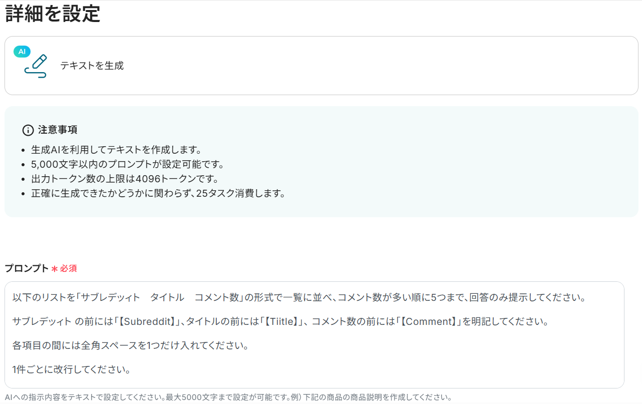 プロンプトは予め設定されていますが、ご自身の業務に合わせて編集しましょう。